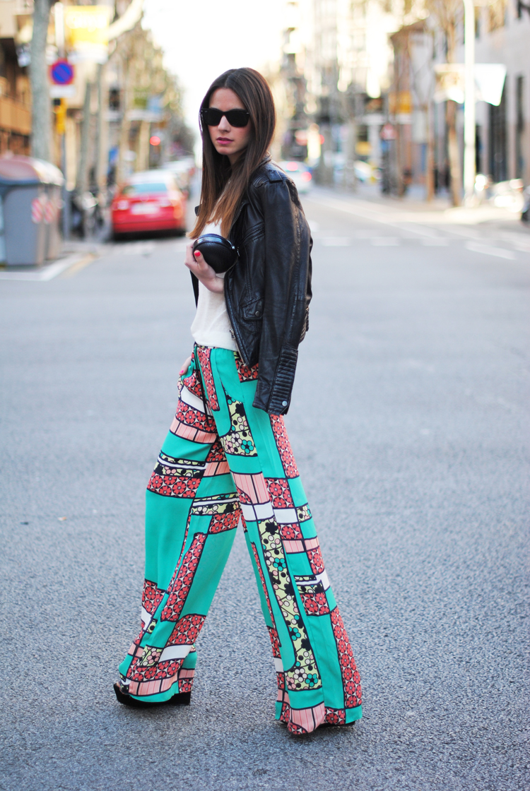 I love these palazzo pants, comfy with a cool print! I decided to combine them with a white sweater and black high wedges but I could definitely wear them with a sleeveless black top and flat sandals as well! Do you like them?